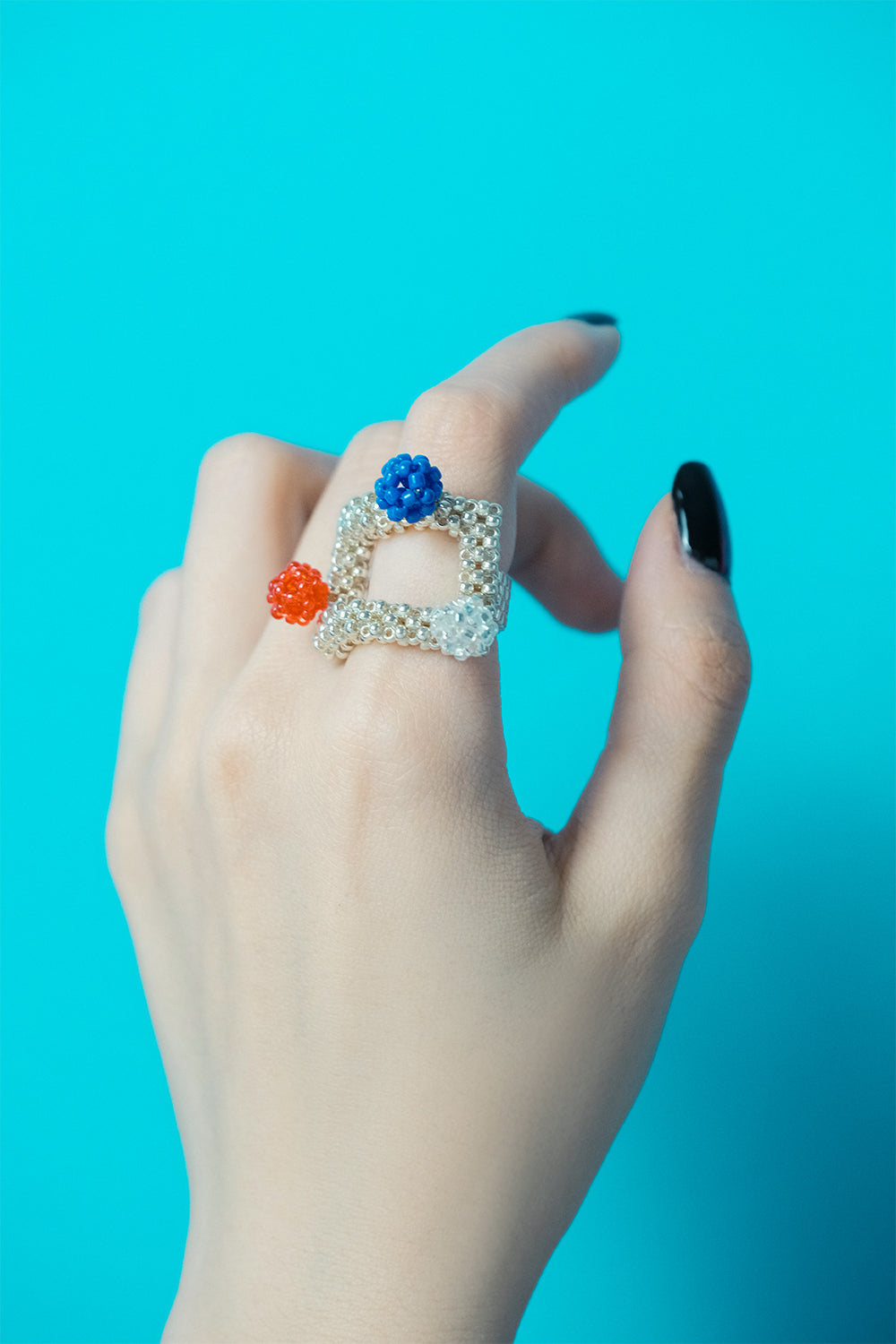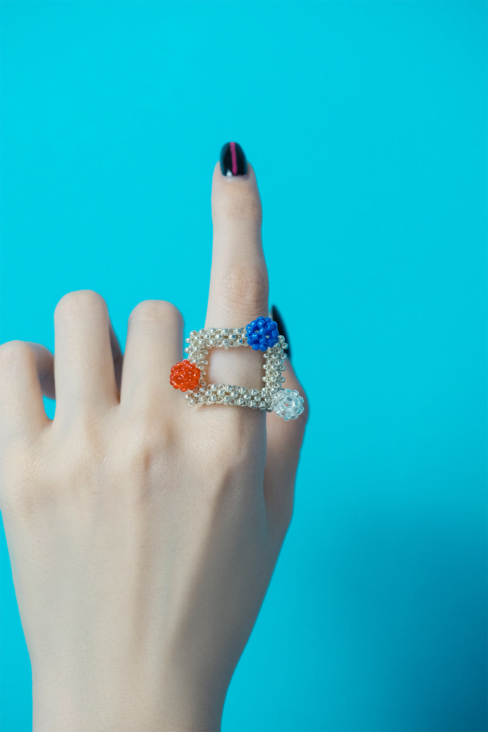 This ring gives off a playful and whimsical vibe, with its colorful balls and silver square design. It's as if you've captured a handful of colorful candies and placed them within a gleaming silver box on your finger, creating a sweet and delightful accessory that's sure to catch the eye of anyone who sees it.